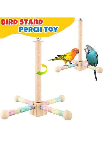360°旋转鸟栖玩具 - 互动木制鹦鹉支架笼配件,适用于虎皮鹦鹉、长尾小鹦鹉、玄凤鹦鹉、锥尾鹦鹉、爱情鸟、雀类 - 适合中小型鸟类的趣味运动玩具