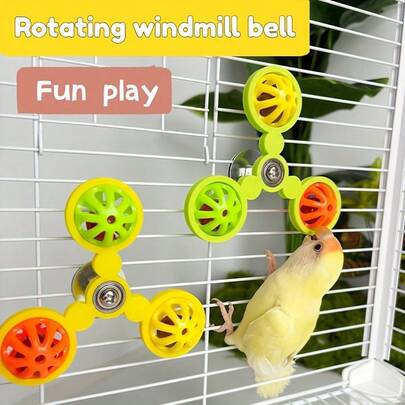 360°旋转鸟玩具,带铃铛和咀嚼球,互动笼内配件,适用于鹦鹉、玄凤鹦鹉、爱情鸟,可缓解无聊并提供精神刺激,配有金属螺丝。