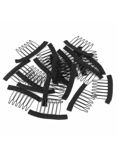 36 件装假发配件不锈钢假发梳黑色假发制作梳子和假发帽夹 - 黑色 - 查看 10