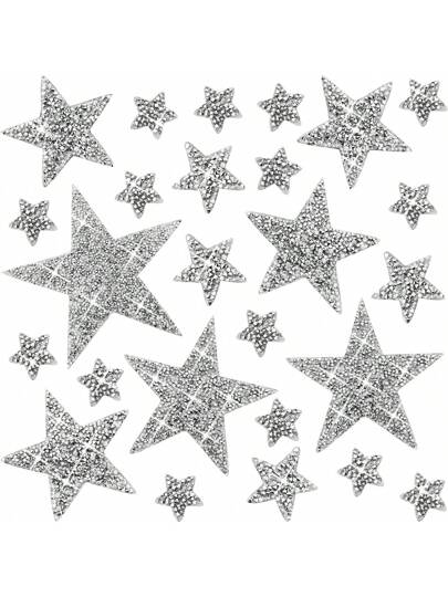 37入組6種尺寸星型熱轉印布貼和星型鑽石貼紙,星型熱轉印布貼和粘性貼紙,用於衣服袋子褲子鞋子手機DIY裝飾,配件(銀色星星)。星形鑲嵌鑽石熱轉印補丁貼紙,帶黏性修補閃光貼布,適用於服裝袋子褲子鞋子手機裝飾配件,五角星鑽石熱轉移DIY設計熱熔膠網補丁,適用於帽子鞋盒服裝材料 - 37件6尺寸星星 - 查看 14