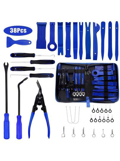 38件汽車拆卸工具集,汽車內飾門夾板裝飾面板拆卸工具套件,汽車手動撬卸工具汽車開閉裝修工具套件(藍色) - 藍色 - 查看 1