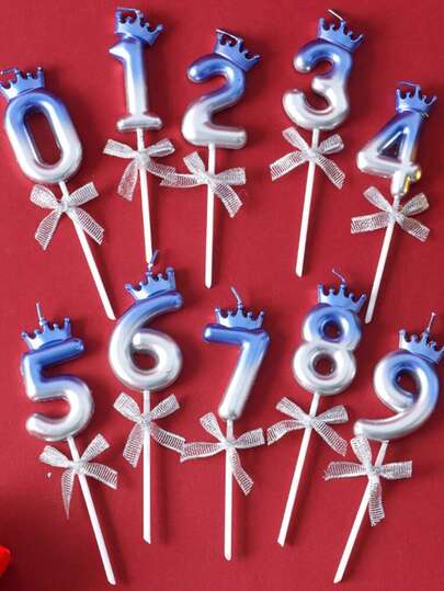 3D皇冠蝴蝶结0-9数字蜡烛生日蛋糕蜡烛生日派对插件装扮蜡烛 - 漸層色 - 查看 3