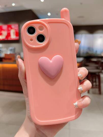 3D愛心裝飾手機殼 - 粉色 - 查看 3
