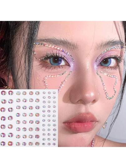 3D水钻脸贴,珍珠脸部珠宝贴纸自粘脸部化妆装饰贴纸水晶脸部珠宝纹身水钻化妆贴纸 - 彩色 - 查看 3