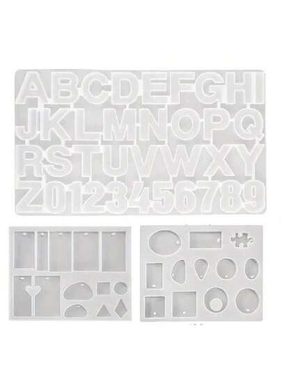 3件套包括珠宝模具、阿拉伯字母模具、珠宝模具、水滴形硅胶模具和由UV树脂制成的DlySilicone模具 - 字母 - 查看 3