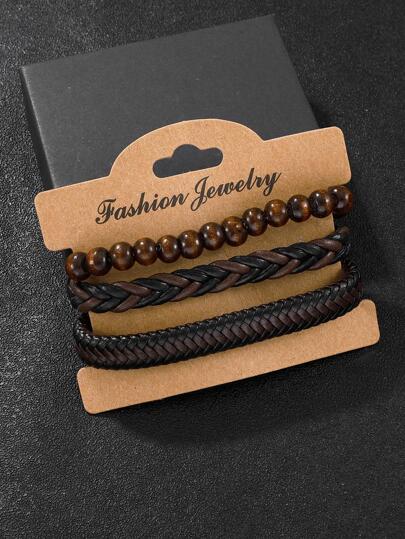 3件套男士珠飾手鍊適合日常裝飾打造時尚外觀 - 棕色 - 查看 3