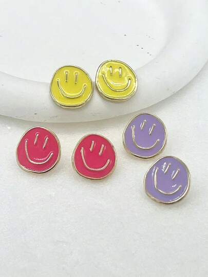 3對/組時尚極簡鋅合金可愛微笑臉耳釘