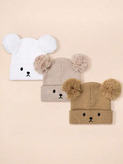 3 件/1 件刺绣熊表情双绒球儿童针织帽,滑雪保暖男女宝宝 Y2K 风格户外冬季无檐小帽,休闲百搭寒冷天气针织帽 - 兒童針織帽 - 查看 3