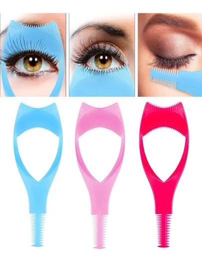 3入組3合1眼影化妝工具,神奇有用的化妝工具睫毛梳防護罩和diy眼線模板,初學者化妝工具眉卡,可重複使用的化妝工具,使睫毛和眼線更完美 - 彩色 - 查看 1