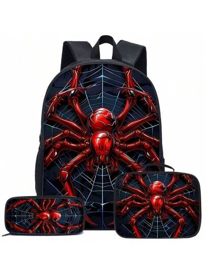 3 件套蓝色/紫色/红色/彩色主题背包套装,带午餐盒和铅笔盒和储物袋 - 耐用涤纶、轻便、时尚混色 - 紅色 - 查看 1