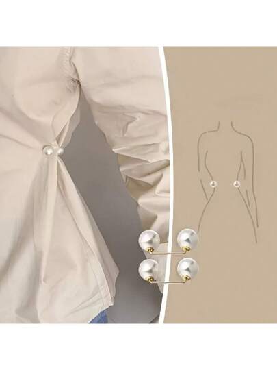 3 件仿珍珠胸针 - 可调节、防滑、用于束腰、调节衣领、固定围巾的别针,时尚配饰,配有香槟色、灰色、白色仿珍珠纽扣 - 非常适合连衣裙、衬衫和服装装饰,优雅的仿珍珠背衬衣夹 - 白色 - 查看 4