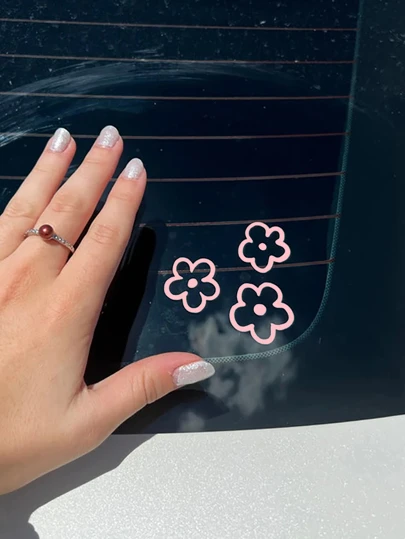 3入組花朵圖案防水汽車貼紙 - 粉色 - 查看 1