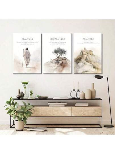 3 件装裱耶稣圣经帆布墙画宗教艺术品基督教墙壁装饰画卧室客厅印刷海报 12 X 16(30x40cmx3 件) - 彩色 - 查看 1
