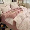 3/4 件花卉床上用品套装,田园风格小碎花羽绒被套,复古风格花卉花园粉色和白色柔软涤纶精致花卉床上用品套装,仿旧花卉和植物印花拉链羽绒被套(1 个羽绒被套 + 1 张床单 + 1/2 个枕套,不含填充物)