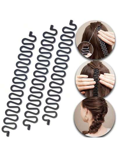 3 件套头发编织工具套装 - 鱼尾辫制作器、头发编织器、扭发造型配件 - 黑色 - 查看 3