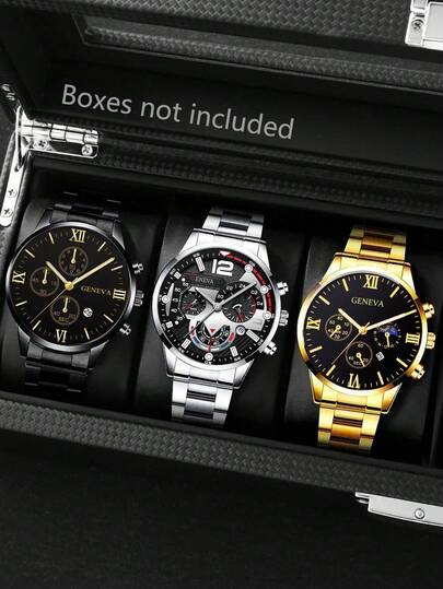 3 件男士休闲奢华商务石英表套装 - 时尚圆形表盘、日期功能、合金表壳和不锈钢表带 - 男士完美礼物