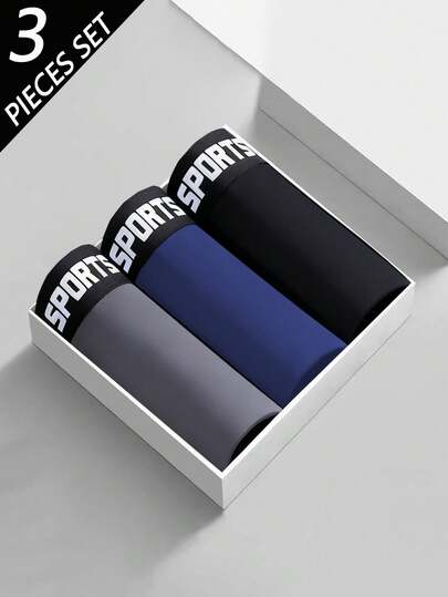 3条装男士舒适弹力透气平角内裤,时尚男士内裤 - 彩色 - 查看 1