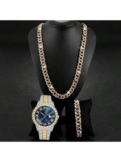 3入組項鍊手鍊石英手錶套裝,男士禮物盒裝 - 彩色 - 查看 1