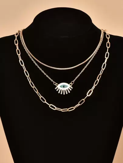 3入組水鑽細節項鍊 - 金黃色 - 查看 3