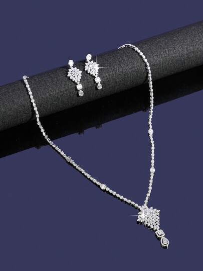 3件套镀铑奢华皇家风格V形几何设计新娘结婚首饰套装,适合日常、婚礼、晚宴佩戴