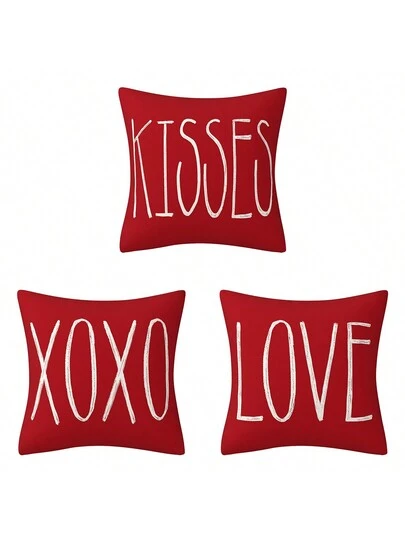 3 件/套 18x18 吋情人節裝飾之吻 Xoxo Love 枕頭套