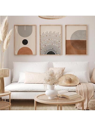 3 件套波西米亚风格中世纪抽象复古绘画阳光几何图形拱门简约墙壁海报帆布印刷现代艺术画适用于客厅卧室办公室装饰,无框,墙壁艺术礼物生日毕业 - 杏色 - 查看 7