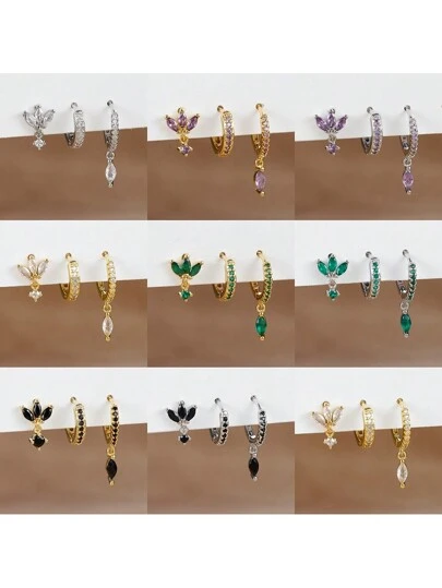 3 件/套精致玫瑰粉色耳环包括耳钉、耳圈、花朵形状,适合女士约会、派对、日常通勤 - 3pcs Earrings set - 查看 11