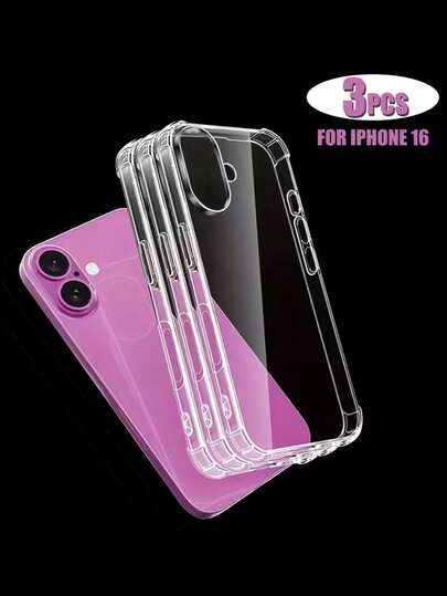 3件套高品质透明防摔TPU手机壳,兼容苹果17/17Pro/17ProMax/16/15/14/13/12/11/16Pro/16ProMax/16Plus/X/XSMax,柔软防震,保护手机后盖 - 無色 - 查看 16