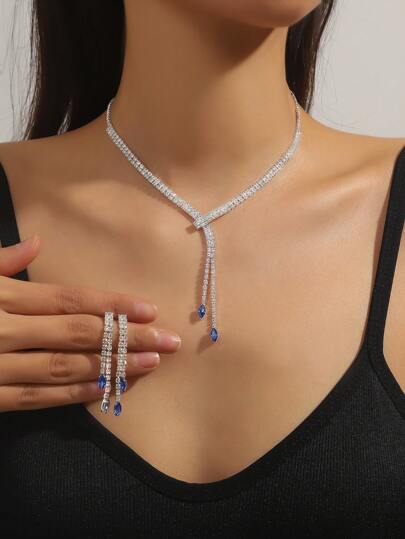3入組鑲鑽項鍊和耳環 - 彩色 - 查看 3