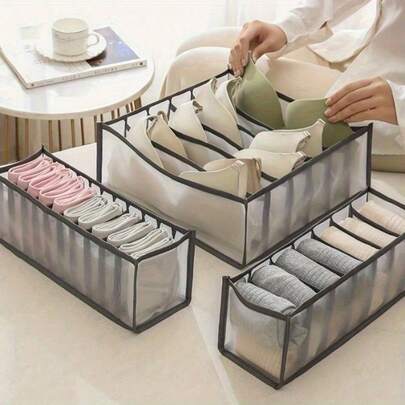 3pcs/Set Underwear Fabric Drawer Storage Basket, Socks Storage Drawer Box For Panties, Bras, Ties, Clothes, Household Space Saving Organizer Of Wardrobe, Closet, Bedroom, Home, Dorm, Bedroom Accessories