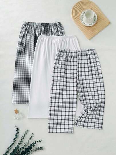 3 件套女士条纹、格子印花短款中长睡裤,舒适柔软,适合所有季节 - 彩色 - 查看 3