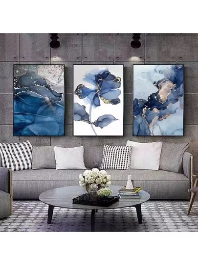 3入組無框藍色的抽象緞帶海報印花北歐風格奢華家庭裝飾掛畫 - 彩色 - 查看 1