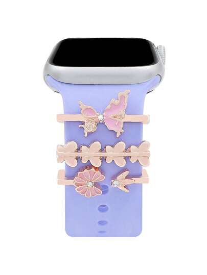 3 件裝錶帶裝飾環,多色蝴蝶電鍍水鑽螺柱,相容於 Apple/三星/華為矽膠錶帶(不含手錶和錶帶) - 玫瑰金 - 查看 5