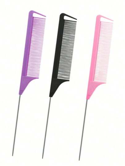 3把女士鼠尾梳,不锈钢针,金属尾梳,适合家庭和沙龙使用 - 彩色 - 查看 1
