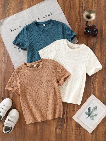 3 件套男童休闲纯色圆领短袖 T 恤,适合运动、休闲和日常户外穿着,夏季 - 彩色 - 查看 3