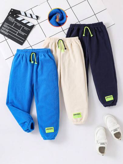 SHEIN 3 件套年轻男孩休闲纯色运动裤,适合日常穿着、大学、运动、户外玩耍、秋冬季 - 彩色 - 查看 6