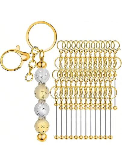 4/8/12/20 件(无珠)串珠钥匙扣套件,金属空白串珠钥匙扣 DIY 配件,适用于吊坠、珠宝制作、礼物 - 鑰匙圈(不含珠子) - 查看 12