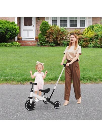 4-In-1 Balance Bike Tricycle, Children's Tricycle From 1 Year With Push Bar, Balance Bikes, The Bicycle With Adjustable Seat And Handlebar, Baby Bicycle From 1-3 Years Boys Girls Running