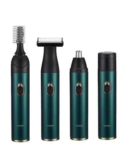 4 合 1 男士和女士電動毛髮修剪器刮鬍刀套裝,usb 充電防水刮鬍刀,適用於眉毛、鼻子、臉部、腿部、腋下、便攜式除毛器、個人護理工具 - 墨綠色 - 查看 4