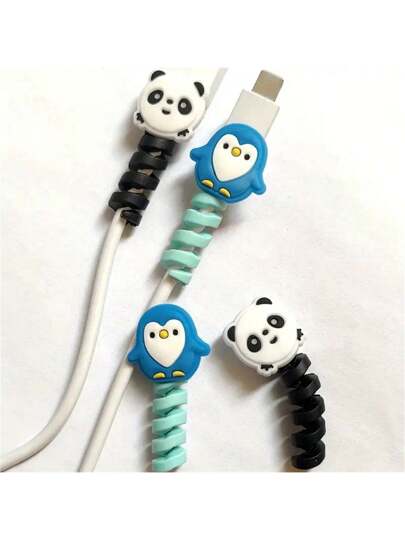 4 件装可爱卡通动物硅胶螺旋电缆保护器,易于安装,无需电池 - 彩色 - 查看 4