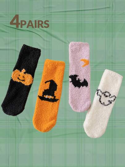 4 双女士袜子万圣节毛绒地板袜