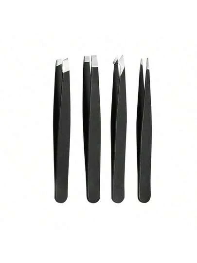 4 件套精密眉镊套装,黑色不锈钢眉镊,平口、斜口、尖头鼻夹,用于修剪眉毛、嫁接假睫毛、拔除胡须、眉毛修剪器、眉形塑造器、眉形塑造套装、眉笔、眉形塑造工具、眉毛、1 美元商品 - 彩色 - 查看 1