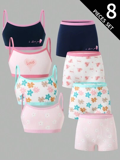 4 件套年轻女孩甜心设计胸罩和内裤套装 - 彩色 - 查看 6
