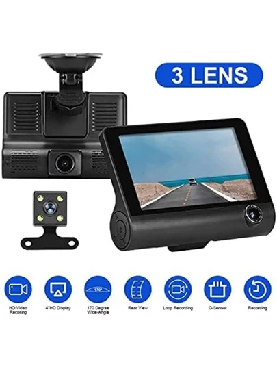 4英寸車前和後內側3通道充分高清1080P視頻車黑色盒 - 黑色 - 查看 1