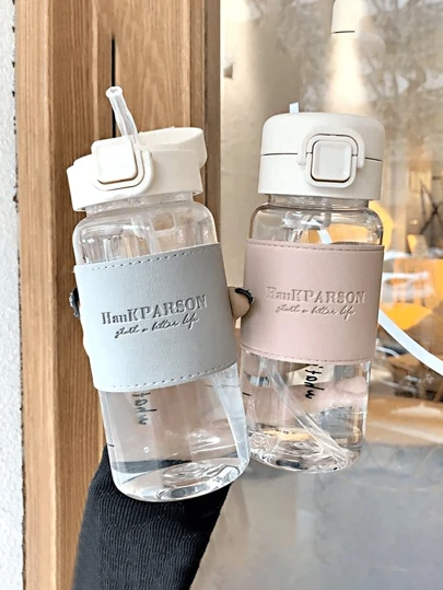 400ml新款弹盖吸管杯小塑料杯带手绳皮套外卖水杯便捷杯礼物 - 彩色 - 查看 1