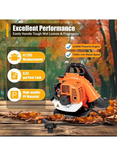 42.7CC Two-Stroke Leaf Blower Backpack Leaf Blower Gasoline - 橘色 - 查看 10
