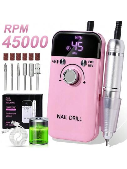 45,000 转/分钟便携式指甲打磨机,专业可充电电动指甲打磨机,适用于亚克力指甲、美甲/修脚、抛光、去除老茧 - 沙龙或家用均可使用,指甲打磨套装,新年、情人节送给女性的完美礼物 - 粉色 - 查看 7