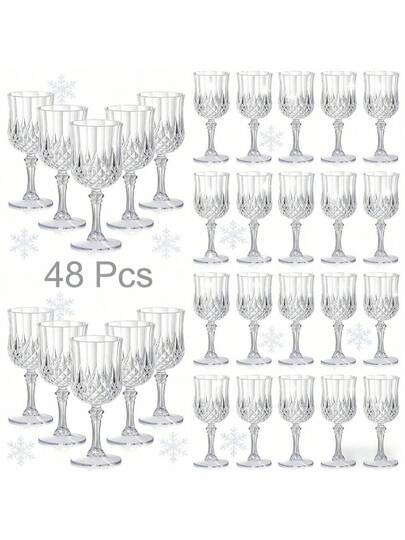 48 Pcs White Unbreakable Plastic Wine Glasses Set-7oz Vintage Champagne Flute Stemware Reusable Party Cups, Camping Drinkware, Wedding, Celebrations, Birthdays, Bridal, Retro Bar, Picnics, Family Gatherings, Table Decoration Christmas New Year Gift