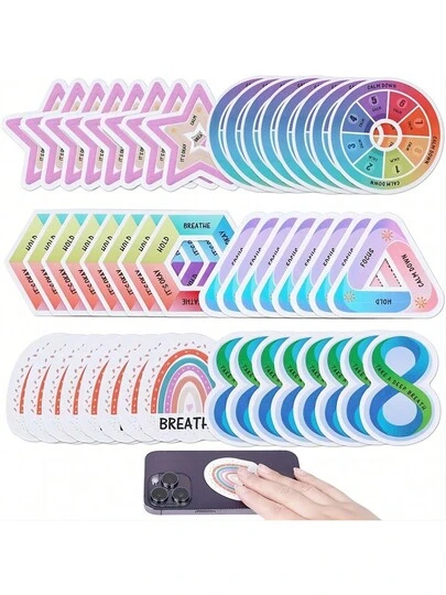 48入組焦慮感觸感貼紙、手指按摩紋路玩具,抗壓觸覺糙感貼紙,能夠減緩成人和青少年的焦慮症狀,適用於寫字桌和教室