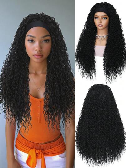 4B/4C 纹理合成假发 - 预弯曲卷发头带假发,适用于耐热湿发和波浪卷发,无需胶水即可快速安装,日常派对轻便透气的假发帽 - 彩色 - 查看 4